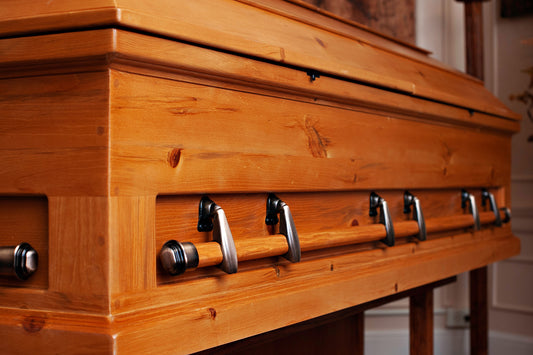 Swing bar style casket handles attach to the outside of a casket and swing out when in use and drop down when at rest. This design is common in casket-building as it allows for the maximum inside width of a casket while maintaining a maximum outside width of 30 inches for standard burial vault clearance.