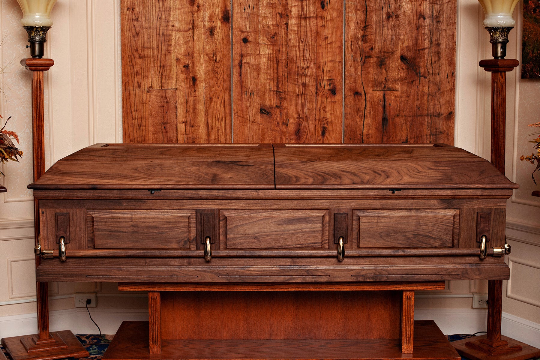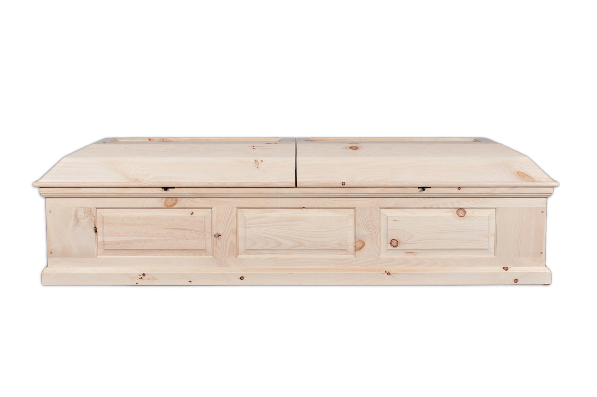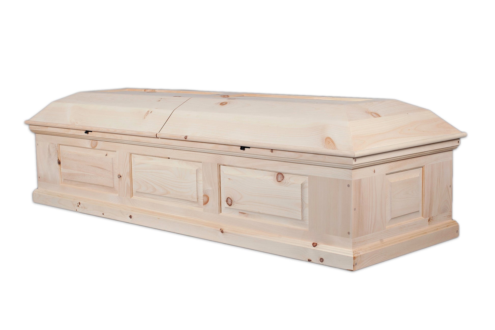 We call this design the Craftsman Panel casket because the sides and lid are constructed from floating or "raised" panels common in Arts & Crafts era furniture and modern cabinetry today. With the flat panels you do not need a special rounded edge gluing jig for the lid.
