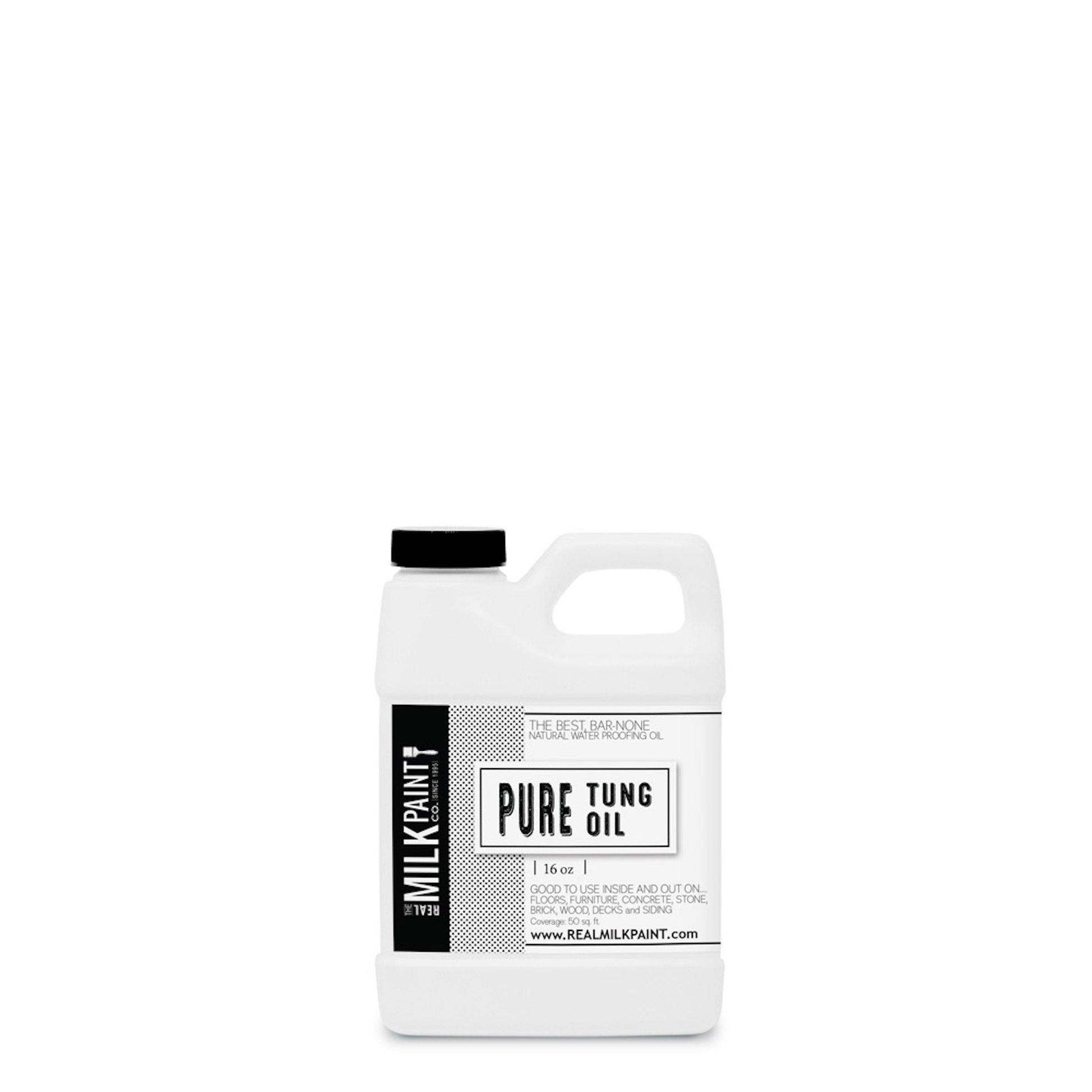 ▫ The Tung Oil offered by Real Milk Paint is a 100% pure oil meaning it comes without any heavy metals, additives, or distillates. Most other oils can be anything from a thinned down varnish to polymerized tung, and most have petroleum distillates added. Ours will not build a gloss finish or heavy finish but will penetrate deeply into the wood to enhance character and water resistance while creating a great wood finish.
