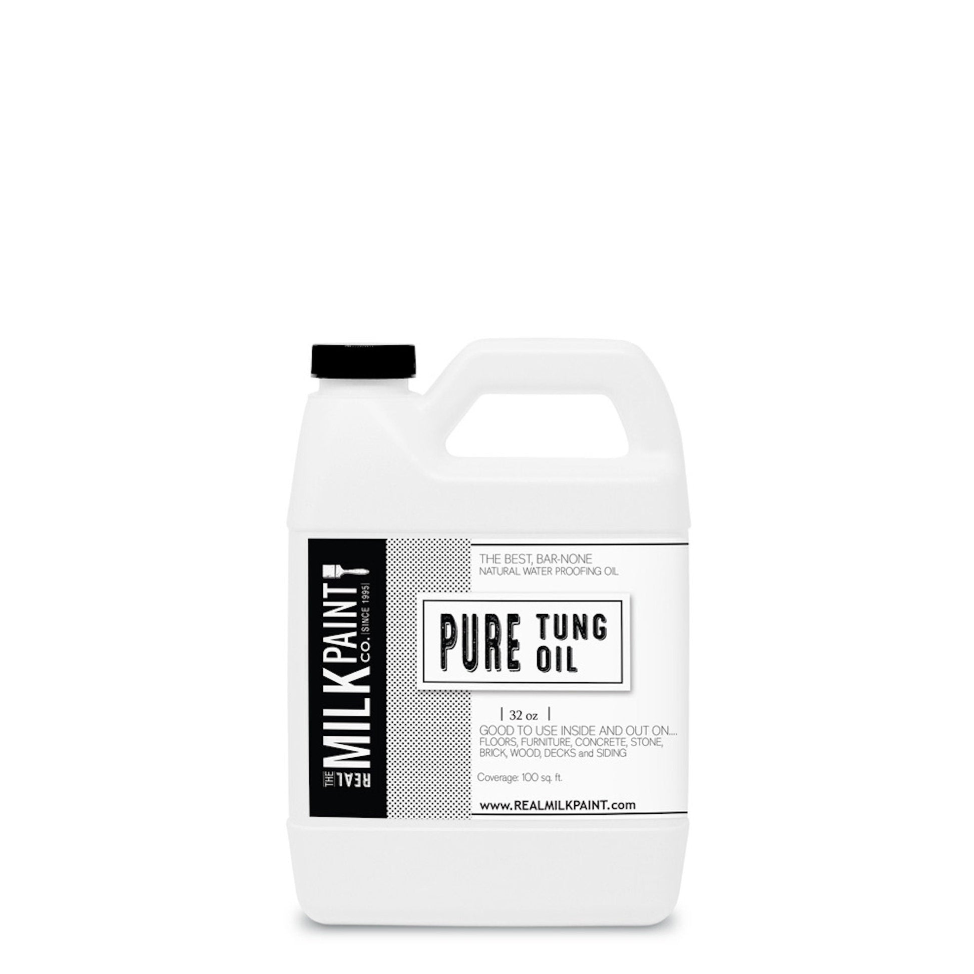 ▫ The Tung Oil offered by Real Milk Paint is a 100% pure oil meaning it comes without any heavy metals, additives, or distillates. Most other oils can be anything from a thinned down varnish to polymerized tung, and most have petroleum distillates added. Ours will not build a gloss finish or heavy finish but will penetrate deeply into the wood to enhance character and water resistance while creating a great wood finish.